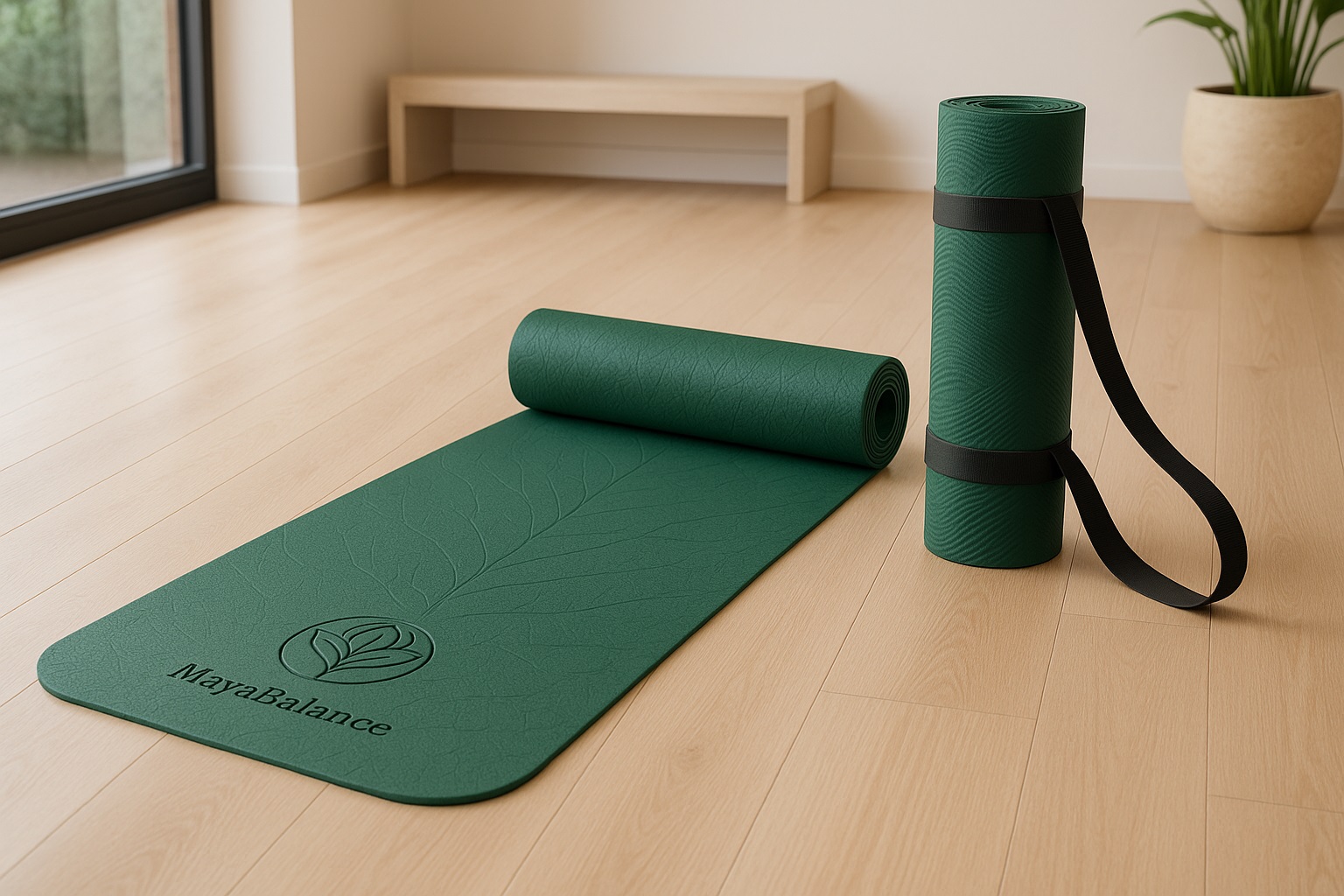 Eco-friendly & non-toxic | Anti-slip texture | Comfortable 6mm cushioning | Lightweight & durable | Elegant Forest Green with engraved MayaBalance logo